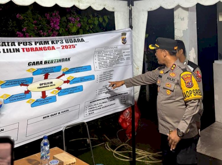 Waingapu_ Kapolres Sumba Timur AKBP Dr. Gede Harimbawa turun langsung memantau pelaksanaan pengamanan ibadah malam Natal 2025 sekaligus melakukan pengecekan Pos Pengamanan (Pos Pam) Operasi Lilin Turangga 2025, pada Rabu 24/12/2025, malam.
