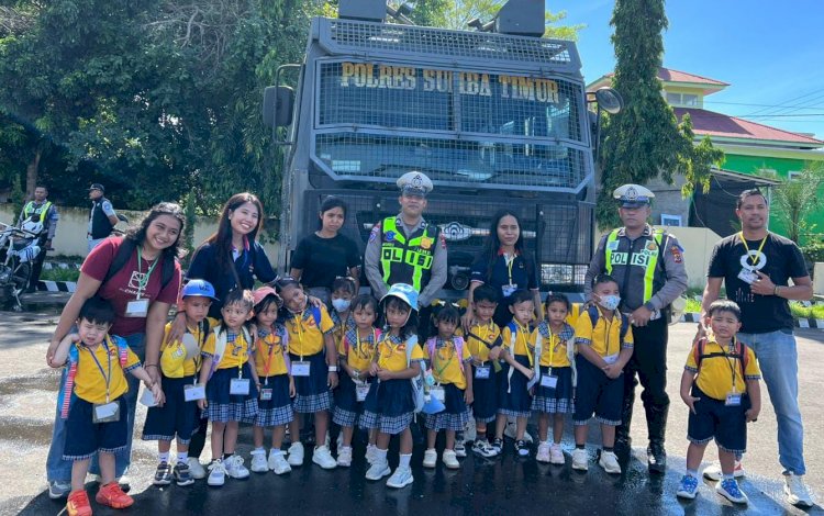 Waingapu__ Satuan Lalu Lintas (Satlantas) Polres Sumba Timur menerima kunjungan edukatif dari siswa-siswi Prescool Charis Sumba. Kunjungan tersebut diikuti oleh balasan anak-anak beserta para guru pendamping. Rabu 11/2/2026 pagi.